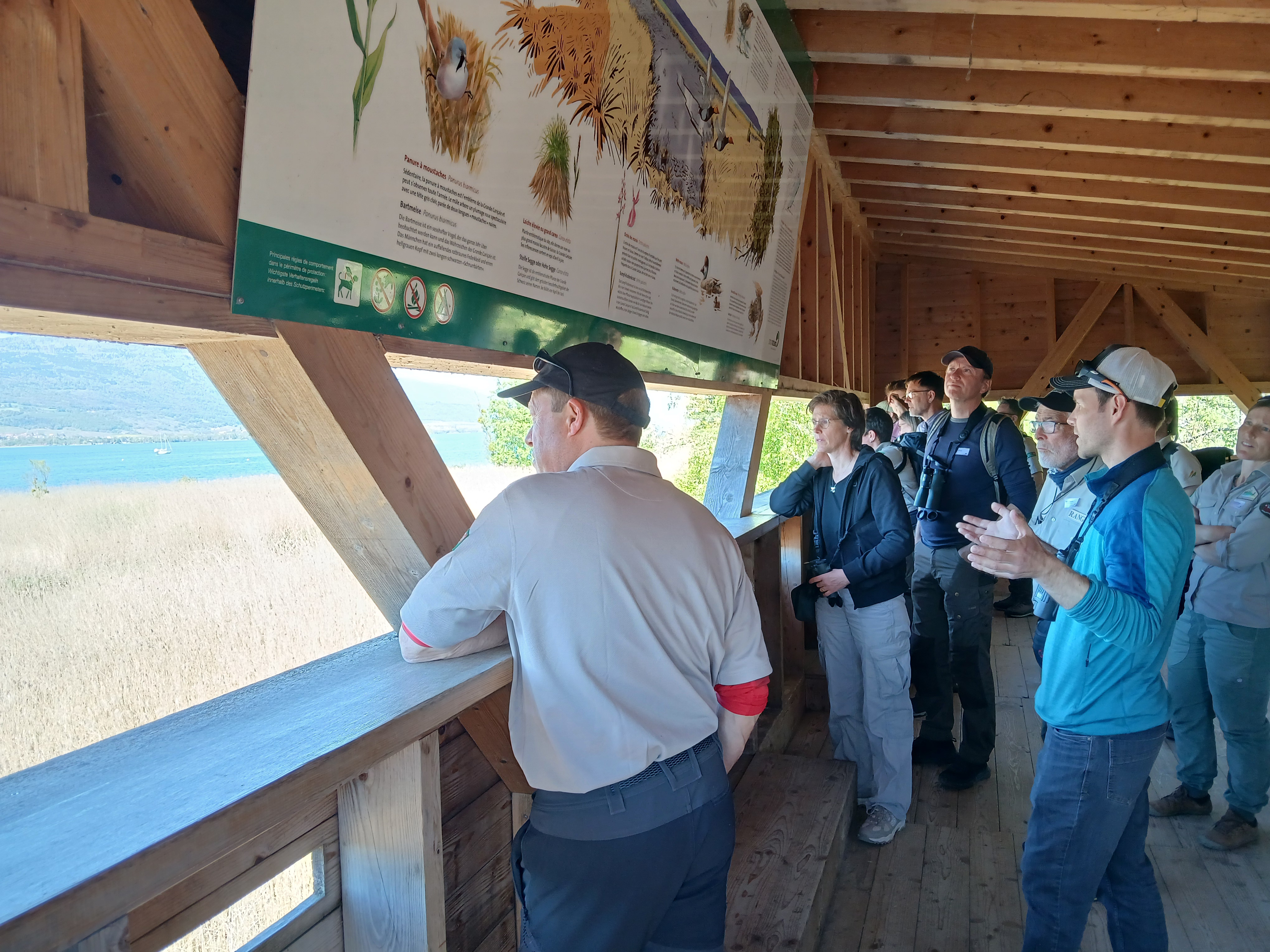 Dieser Tag des Austauschs machte seinem Namen alle Ehre, und die Übersetzungen ins Deutsche und Französische trugen wesentlich zur Inklusion und Teilhabe aller bei. Ein grosses Dankeschön an Andreas Bolt (Pro Natura), Christophe Sahli und Christophe Le Nédic (AGC) sowie Matthias Vögeli und Benjamin Rothenbühler (Schweizerische Vogelwarte) für ihr Fachwissen und die Organisation dieses Tages in dieser wunderschönen Umgebung!